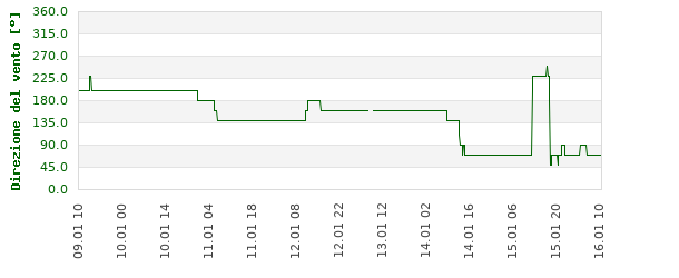 Valori a 13 m: velocità del vento e direzione (tetto della casa).