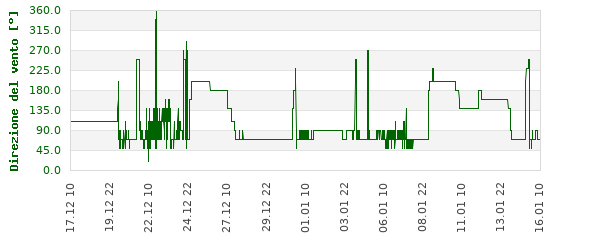 Valori a 13 m: velocità del vento e direzione (tetto della casa).